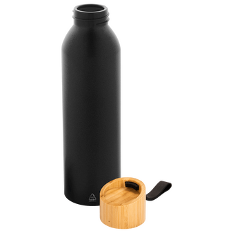 Aluminiumflasche mit Bambusdeckel und Trageschlaufe, 600 ml, ohne Werbeanbringung