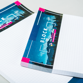 Block mit Leimbindung, DIN A5, 10 Blatt, 4/4 farbig beidseitig bedruckt