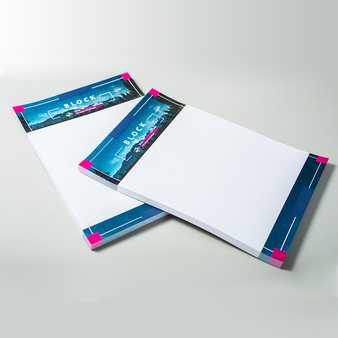 Block mit Leimbindung, DIN A5, 50 Blatt, 4/0 farbig einseitig bedruckt