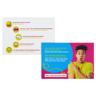 Pro Packung: 100 Bogen à 14 Etiketten = 1400 Etiketten