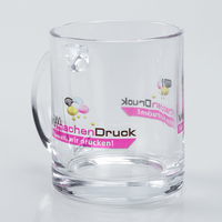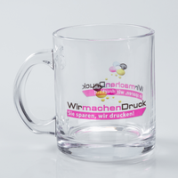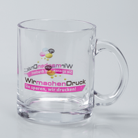 Alle Tassen gleiches Motiv: Hochwertiger Sublimationsdruck auf transparentem Trinkglas (ohne Weissdruck)