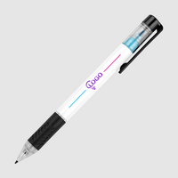 Dieser Kunststoff-Drehkugelschreiber mit integriertem Textmarker bietet eine vielseitige Lösung in einem praktischen Design. Das 2-in-1 Modell mit transparenter Schutzkappe kombiniert die Funktionen eines Drehkugelschreibers und eines Textmarkers. Erhältlich ist er wahlweise mit blauer oder schwarzer Tinte. Bitte beachten Sie, dass der Clip beweglich ist, was eine vollständige Rundum-Personalisierung ermöglicht.