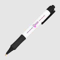 Dieser Kunststoff-Druckkugleschreiber überzeugt mit einem grosszügigen Gehäuse, das sich perfekt für ein optimales Branding eignet. Sein weicher Gummigriff sorgt für zusätzlichen Komfort beim Schreiben. Erhältlich ist er wahlweise mit blauer oder schwarzer Tinte. Bitte beachten Sie, dass der Clip beweglich ist, was eine vollständige Rundum-Personalisierung ermöglicht.