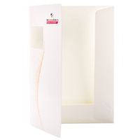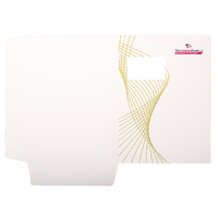 Hochwertige Mappe für DIN A4, mit Fensterstanzung, 2-teilig mit 2 Laschen und Visitenkartenschlitz, 4/0 farbig (Aussenseite bedruckt), mit Heissfolienprägung Gold auf Aussenfläche