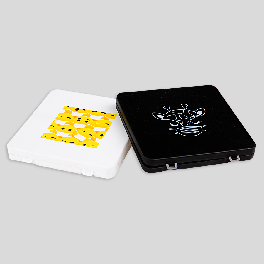 In unserem Sortiment finden Sie unter anderem robuste Maskenboxen, mit denen Sie Ihre Mund- und Nasenmasken vor Schmutz bewahren und besonders bequem transportieren können. Legen Sie Ihre Masken in die Box und nehmen Sie sie in Ihrer Tasche oder Ihrem Auto mit – so haben Sie jederzeit eine Ersatzmaske zur Hand. Die Maskenbox für FFP2- und KN95-Masken ist 130 x 130 x 16 mm gross und in Schwarz sowie Weiss erhältlich. Sie besteht aus stabilem Kunststoff und wird auf dem Deckel von uns nach Ihren Wünschen bedruckt.