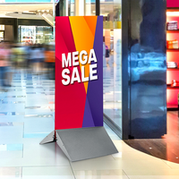 Die Paneelbasis Aluminium mit 50 cm Breite ist ein freistehender Aluminiumsockel zur Aufnahme von Werbetafeln.