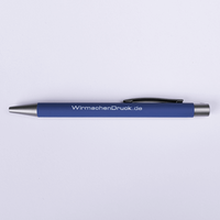 Alle Kugelschreiber gleiches Motiv: gummierter Schaft und metallische Ausstattungselemente