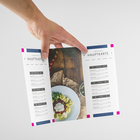 Speisekarte, gefalzt auf DIN lang, 6-seiter (Wickelfalz)
