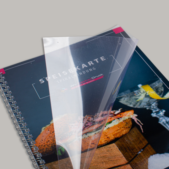 Speisekarte mit Metall-Spiralbindung, Endformat 10,5 cm x 29,7 cm, 32-seitig